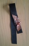 2013Boekenlegger van zwart leer versierd met een gevouwen en gehamerd plaatje koper met gehaakt koperdraad met agaat kralen.
